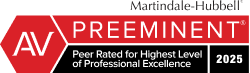 *The Martindale-Hubbell Peer Review Ratings serve as an objective indicator that a lawyer has the highest ethical standards and professional ability. A rating of AV® Preeminent™ denotes that an attorney has achieved the status of “Very High to Preeminent” legal ability based on recommendations from the attorney’s peers. AV® Preeminent™ and BV® Preeminent™ are certification marks of Reed Elsevier Properties Inc., used in accordance with the Martindale-Hubbell certification procedures, standards and policies.